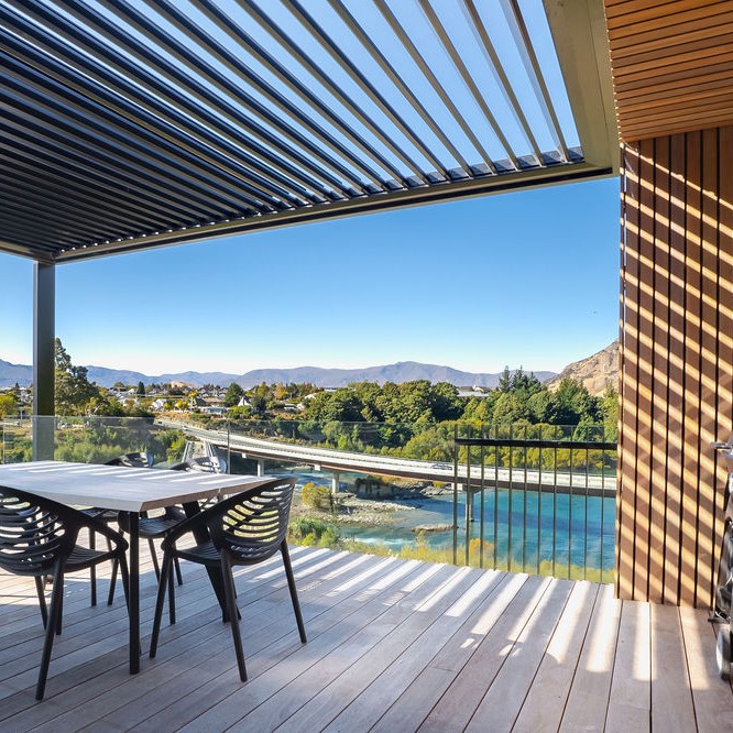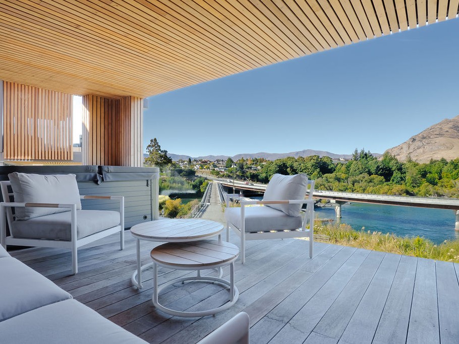 The ever-changing outlook includes the Kawarau River, Coronet Peak, the Crown Range and The Remarkables. Whilst listening to the soothing sound of water, you can watch the world go by.