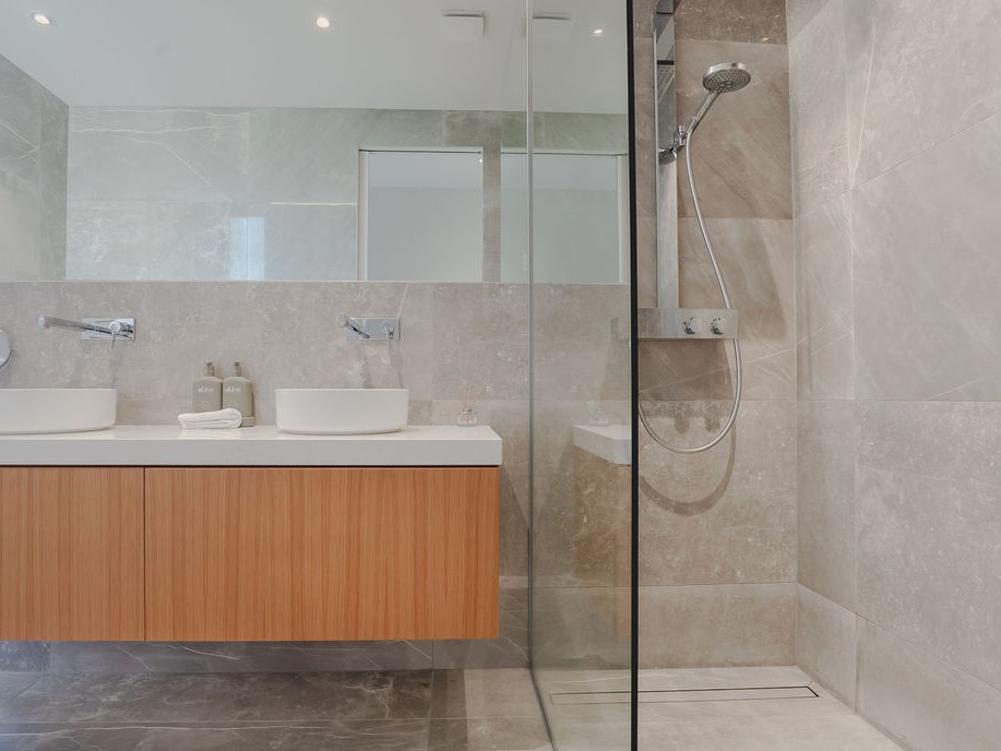 There are four bedrooms and three bathrooms. There are two master bedrooms with walk-in robes and tiled en-suites. The second living area downstairs leads out to another outdoor entertaining zone. There is also an office, laundry, double garage.