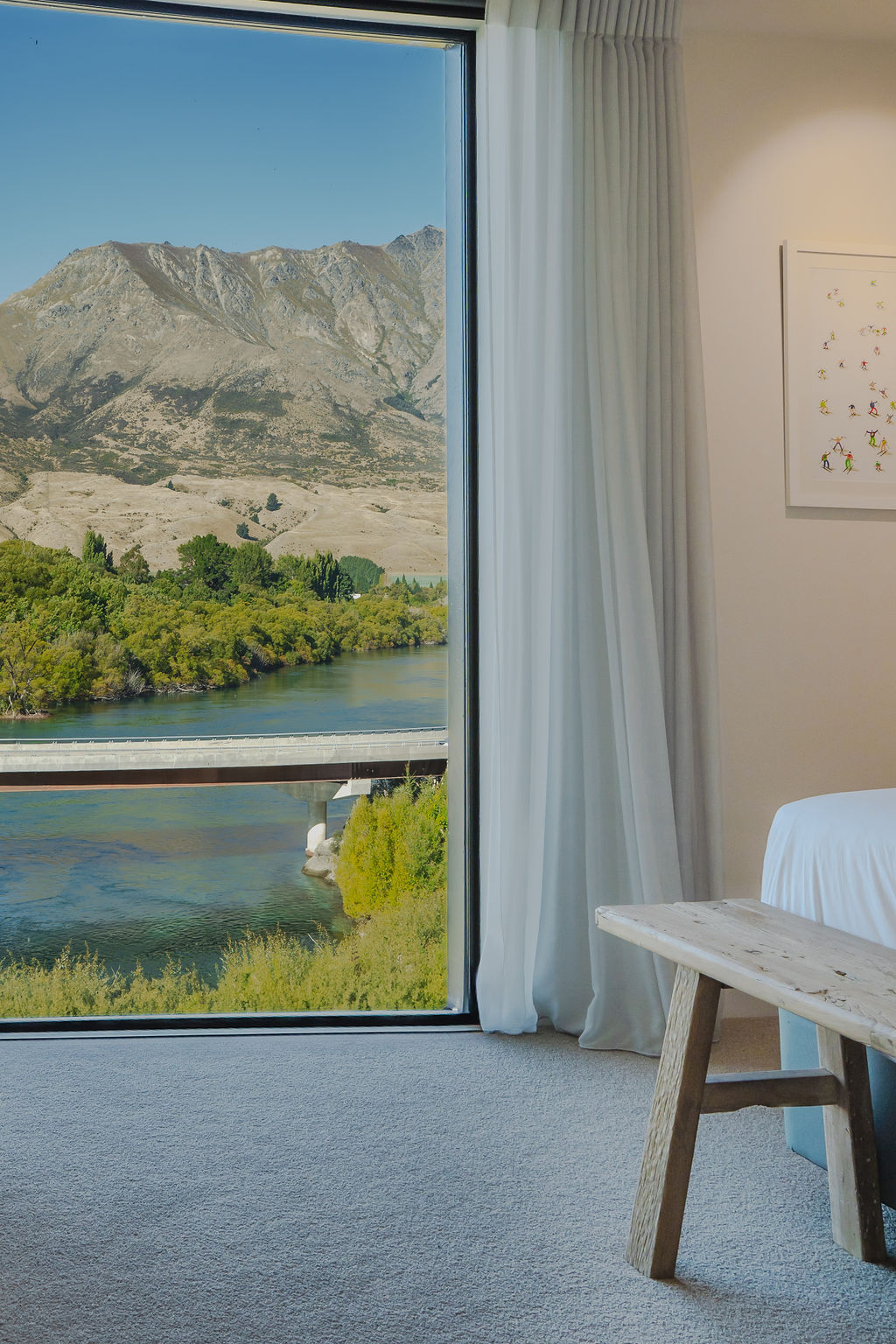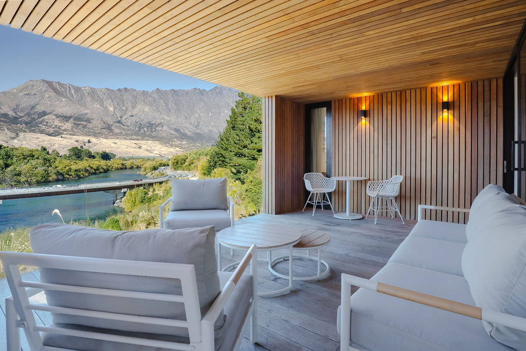 The ever-changing outlook includes the Kawarau River, Coronet Peak, the Crown Range and The Remarkables. Whilst listening to the soothing sound of water, you can watch the world go by.